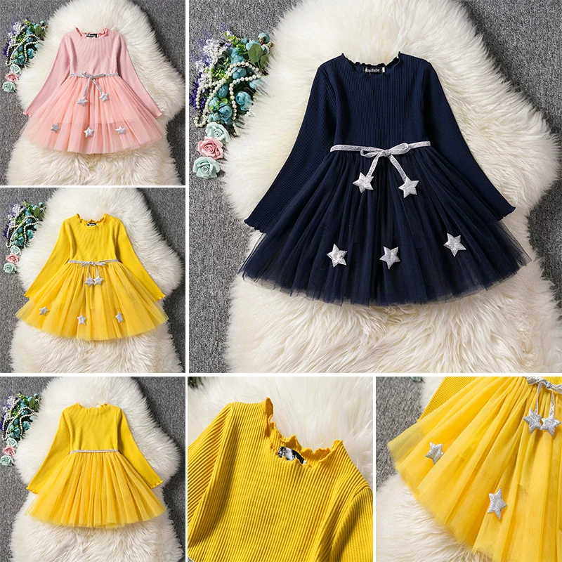 2023 Elegant Kids Polka-Dots Girls Party Dress Autumn/Summer Clothes Children Long Sleeve Clothing Girl Birthday Princess Dress