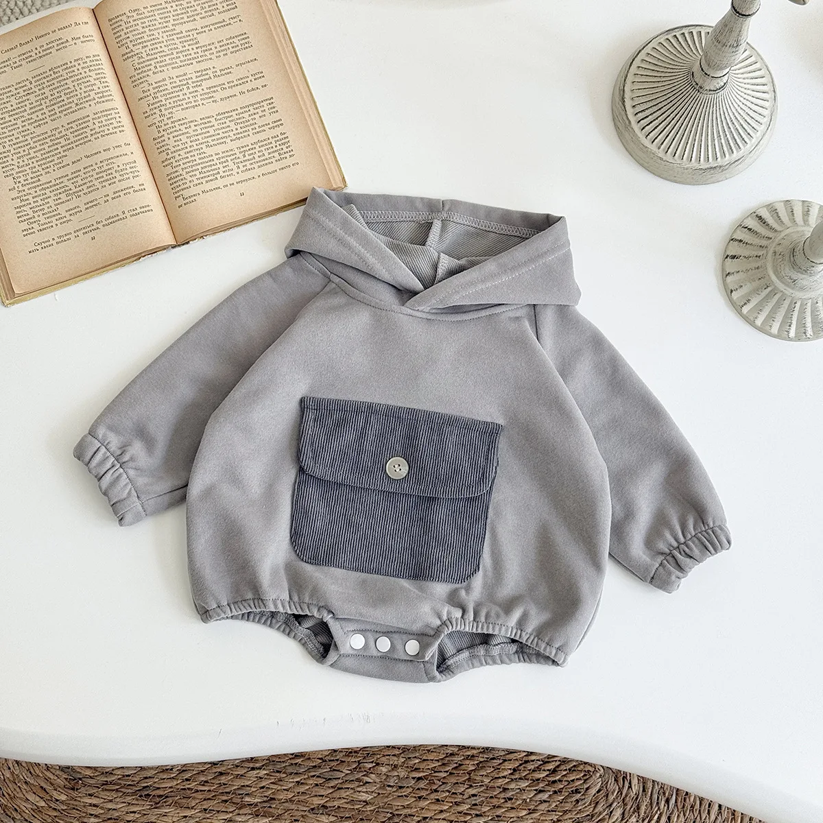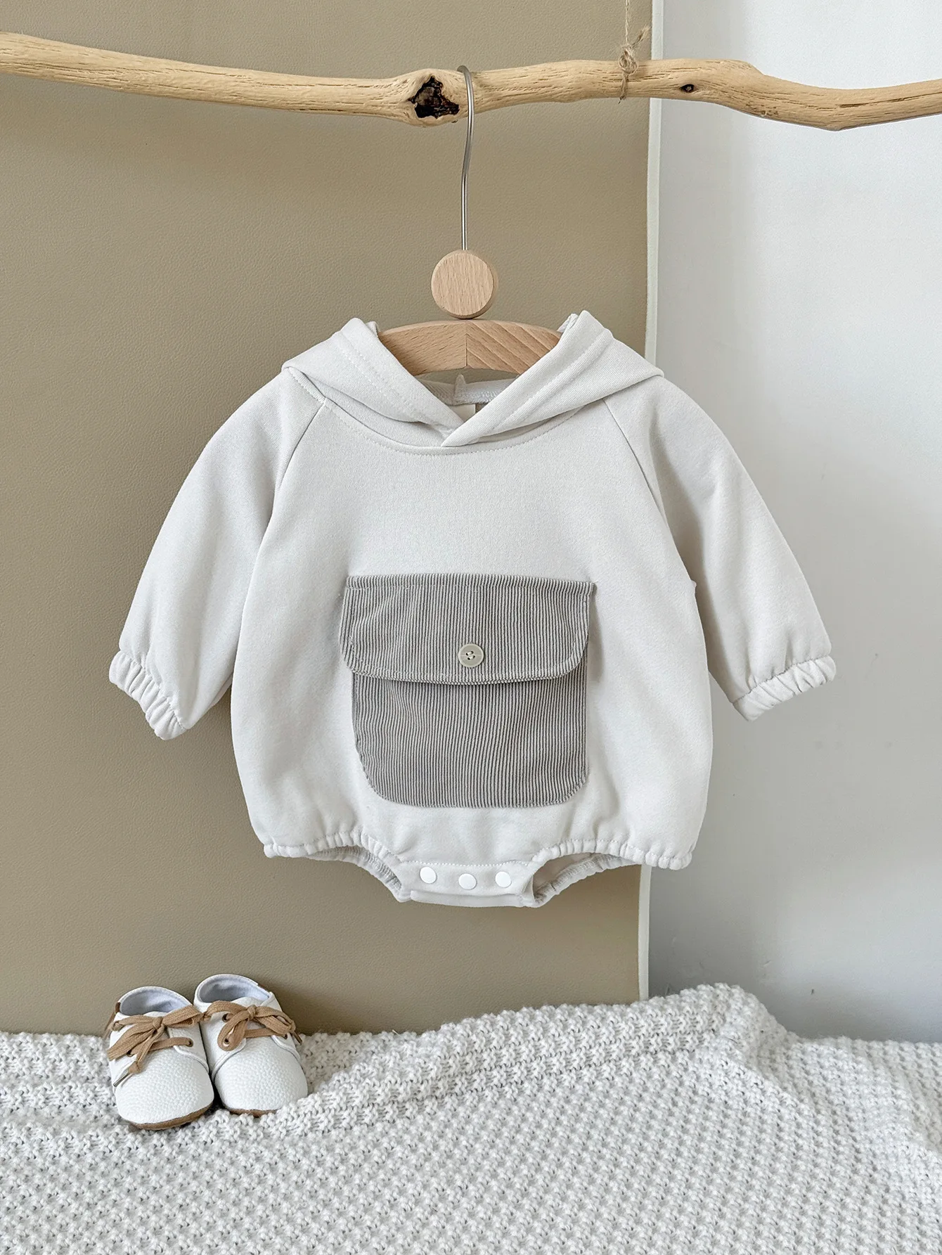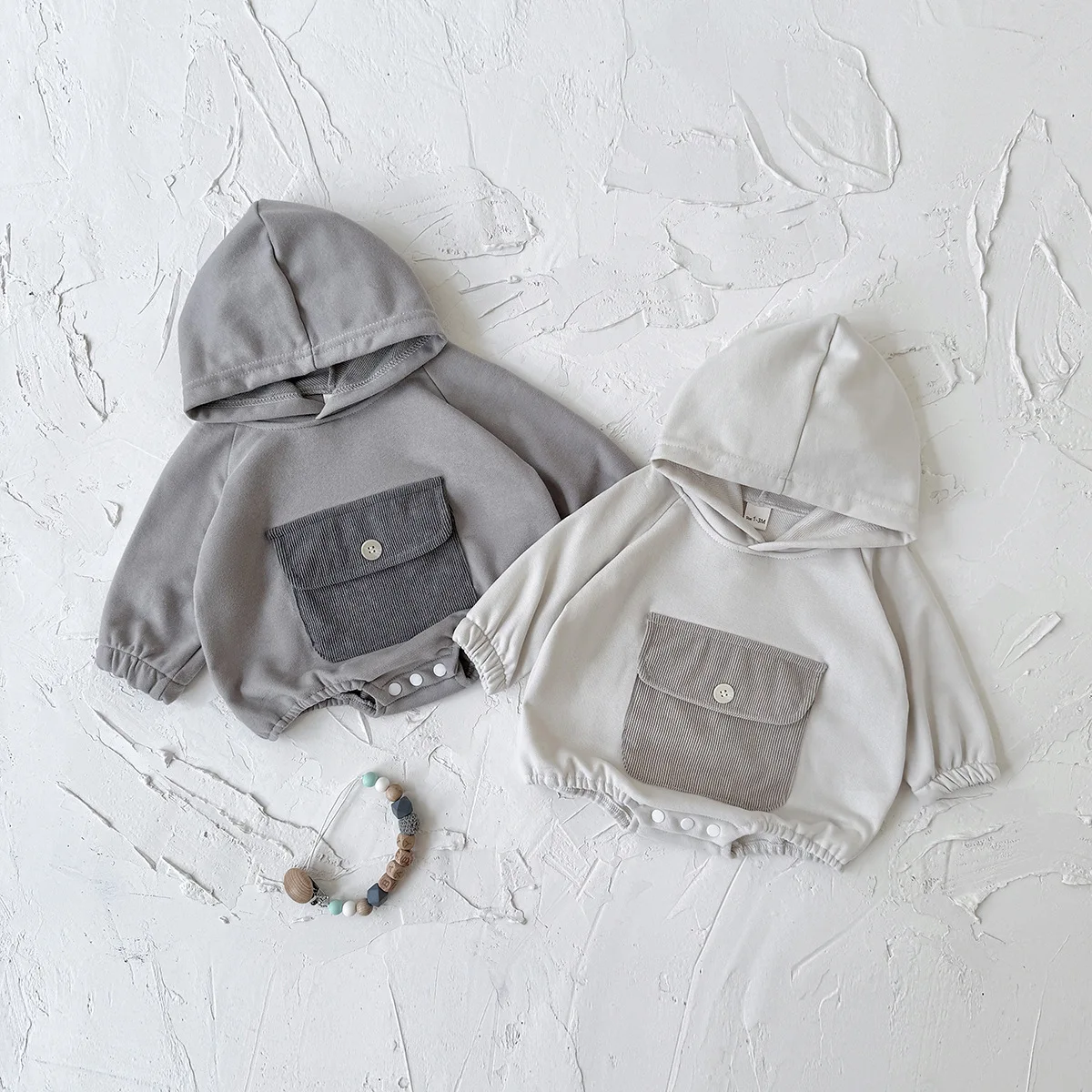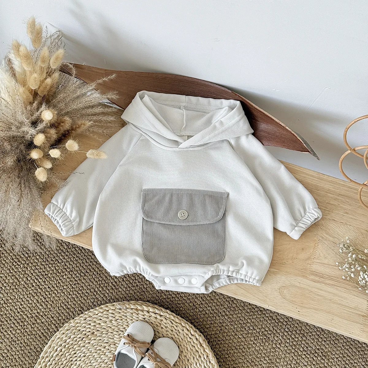 Toddler Baby Clothes Cotton Hooded Onesie with Chest Pocket Bodysuit 0-2Y Baby Girl Clothing Casual Newborn Baby Boys Romper
